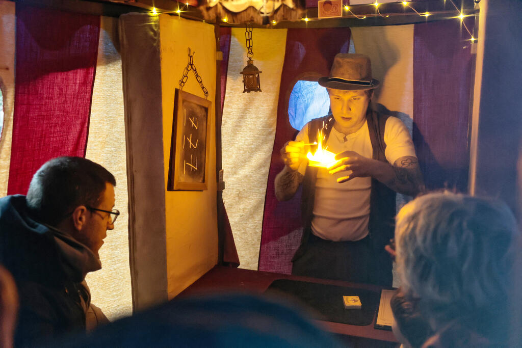 Un chapiteau miniature qui se déplace au grès de ses envies. Il nous invite à s'installer un instant et à se laisser embarquer par la magie du spectacle.
