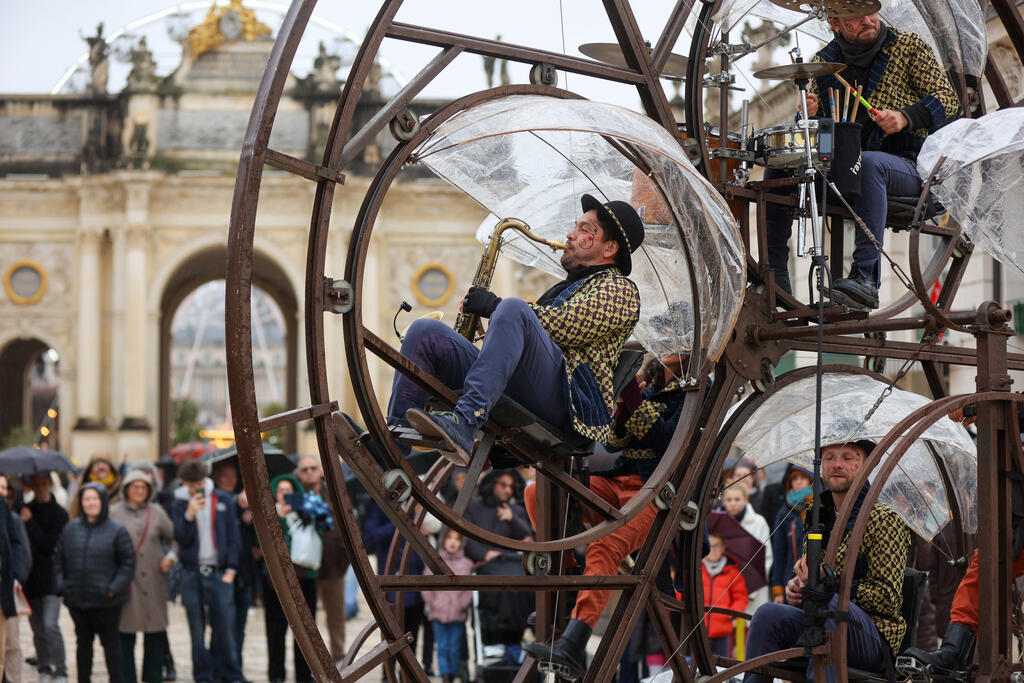 Des musiciens mettent en mouvement une roue géante de 4 mètres de hauteur, combinant les principes de la géométrie et de la musique. Rodofanio est un véritable conte urbain, un voyage de rêve et de fantaisie.