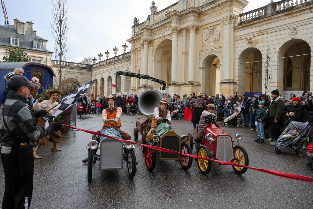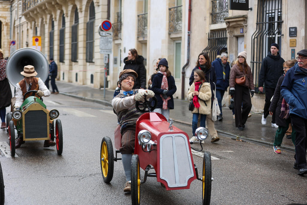 Dans quelques instants, les grands coureurs d’antan passeront sous l’acclamation de la foule, Le public fait tout à coup partie du ravitaillement. Une distraction pour les conducteurs, du champagne qui coule et de la danse.