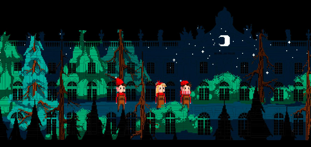 Chaque soir du 21 novembre au 4 janvier, la façade de l’Hôtel de ville se transforme en écran géant pour un nouveau mapping-vidéo qui revisite la légende originelle en mode pixel art !